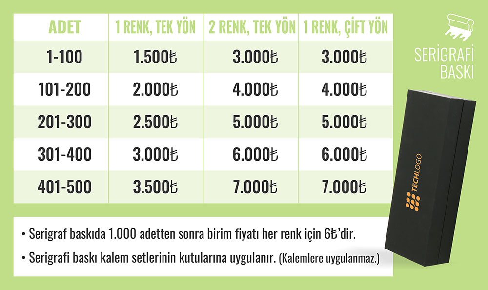 Serigrafi Baskı baskı seçeneği mevcuttur.