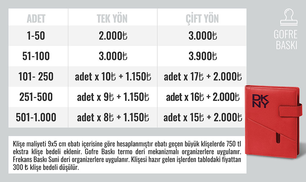 Gofre Baskı baskı seçeneği mevcuttur.