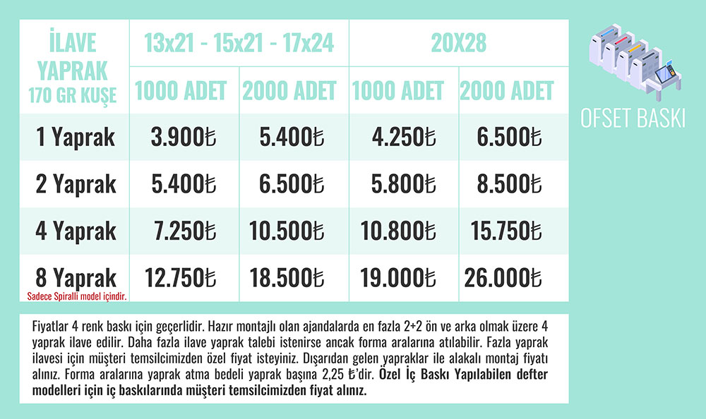 Ofset Baskı baskı seçeneği mevcuttur.