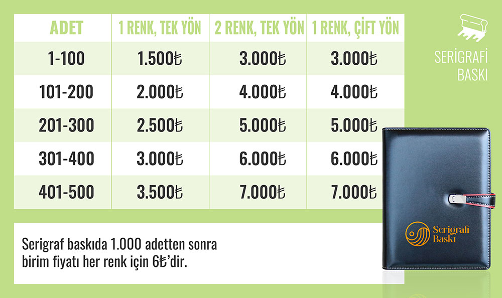 Serigrafi Baskı baskı seçeneği mevcuttur.