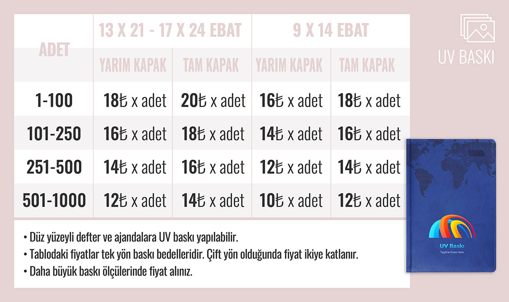Uv Baskı baskı seçeneği mevcuttur.
