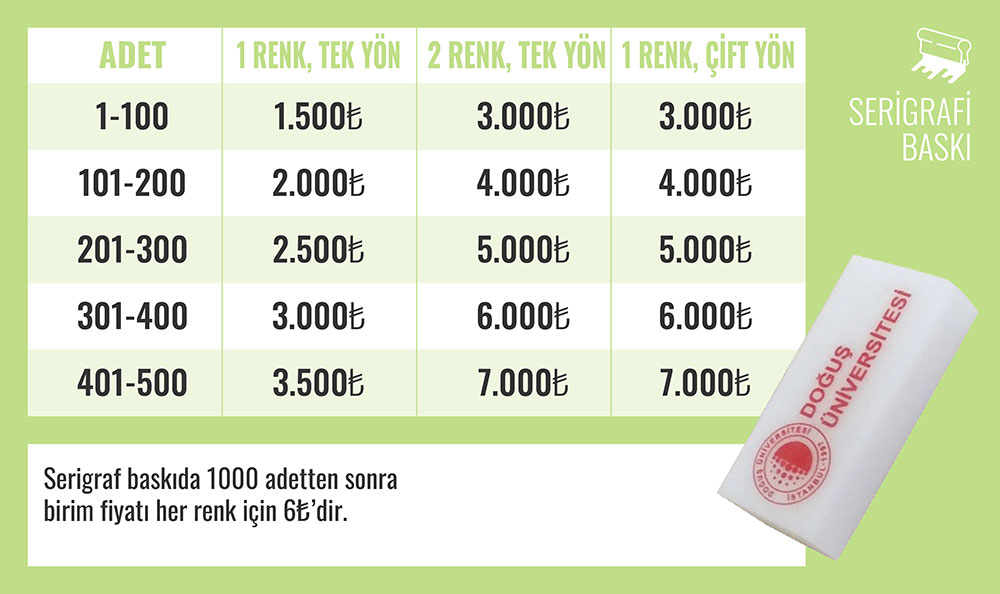 Serigrafi Baskı baskı seçeneği mevcuttur.