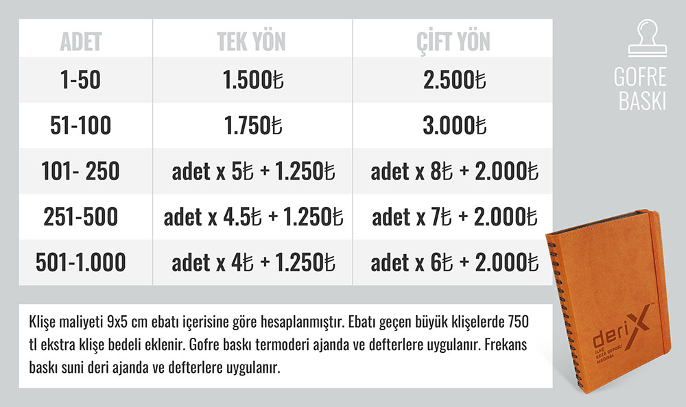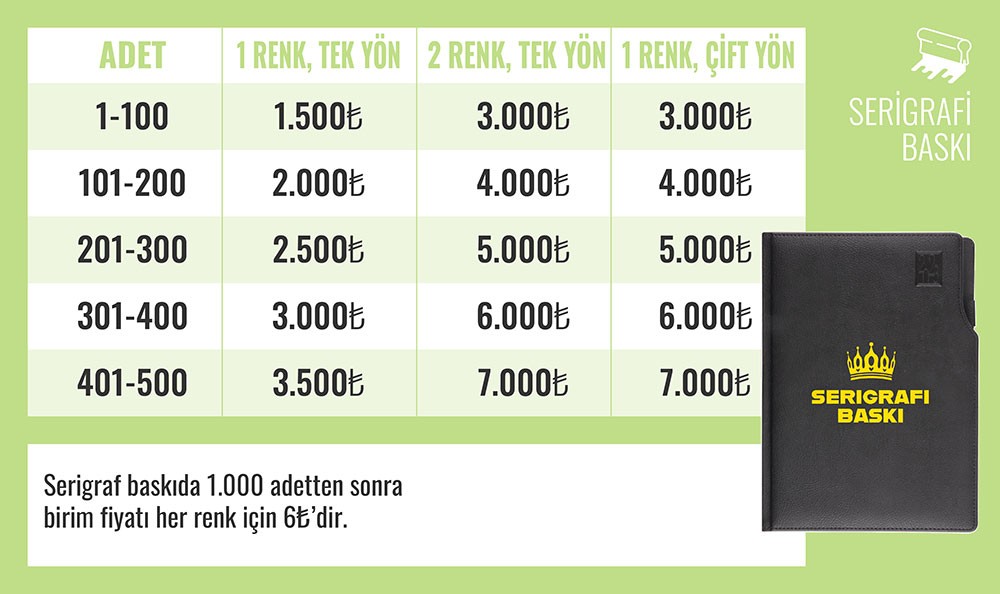 • 500 adetin altındaki siparişlerde toplam fiyata 1.750 TL + KDV ilave eklenir