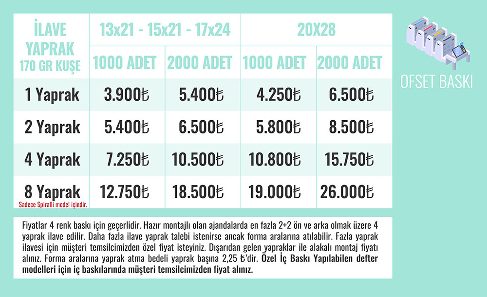 • Fiyat, 500 adet ve üzeri adetlerde geçerlidir